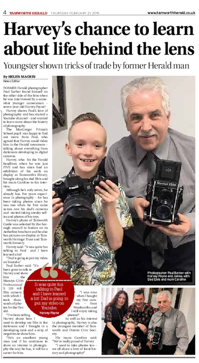 Following my interview with Mr. Paul Barber at the Tamworth Herald offices on 18th February 2019, a few days later on the 21st February the Tamworth Herald created a wonderful story about me interviewing Mr. Paul Barber for my YouTube videos.